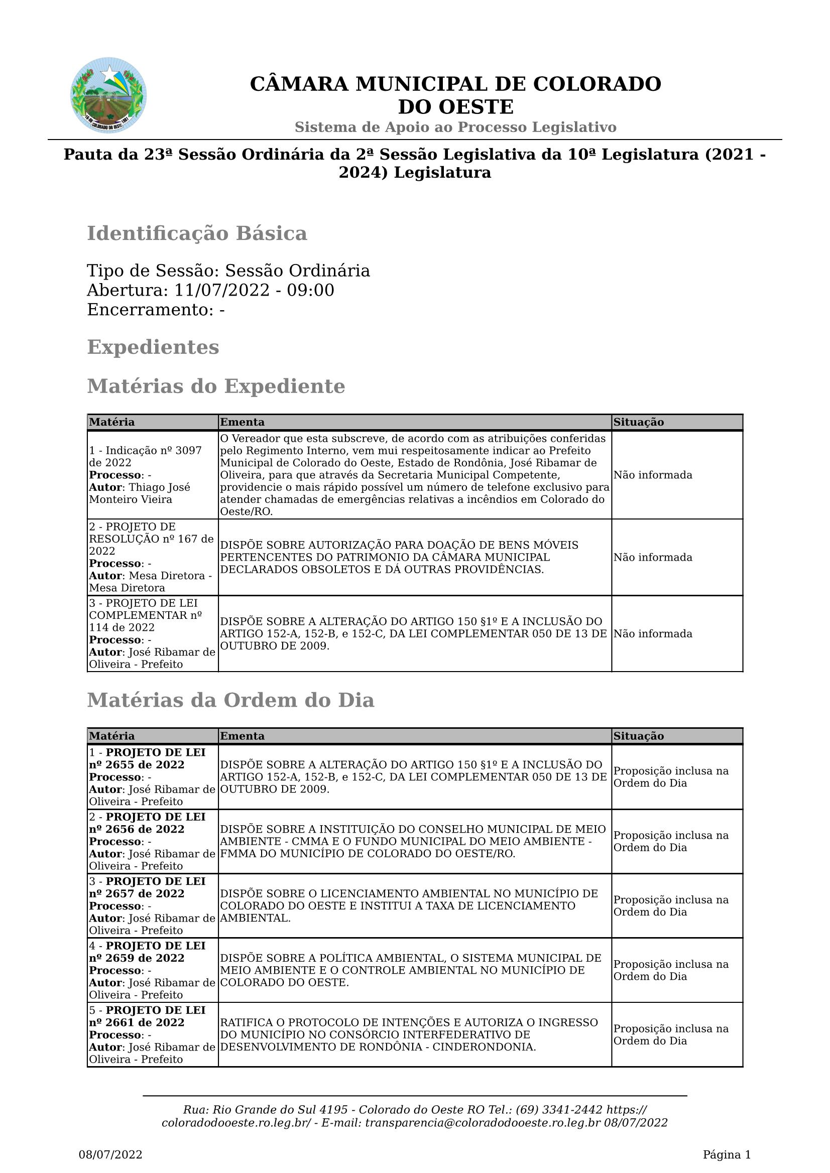 Portal com todas as informações da Câmara Municipal de Colorado do Oeste - RO